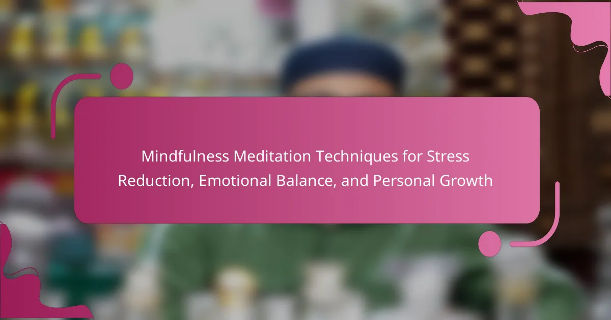 Mindfulness meditation techniques effectively reduce stress, enhance emotional balance, and promote personal growth. These practices encourage present-moment awareness, fostering relaxation and resilience. Techniques such as breath awareness and body scan are accessible for beginners, while advanced methods like sound meditation and mindful movement offer deeper insights. Regular practice leads to improved emotional regulation and clarity, making mindfulness a valuable tool for personal development.